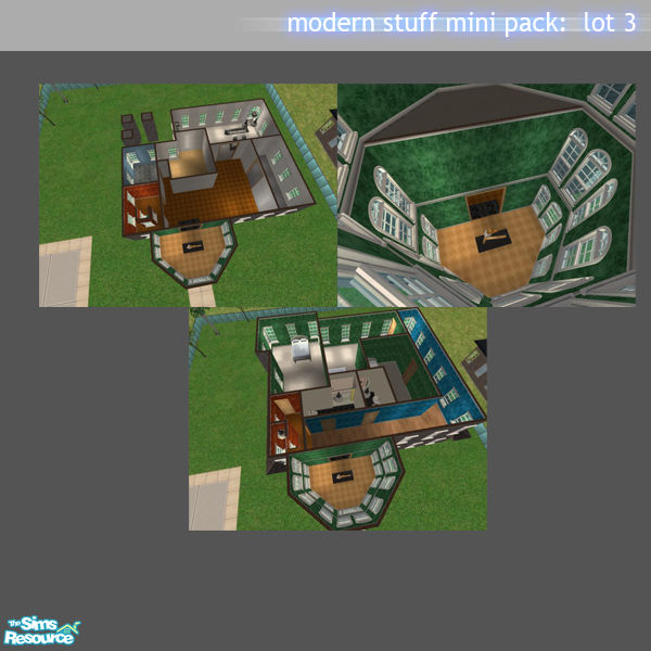 A modern styled lot, walls, floors, and objects included in lot are from the Modern Stuff Mini Pack Sets.