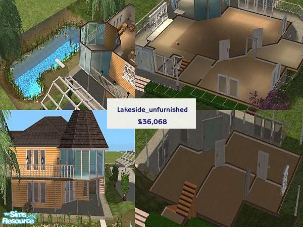 Lakeside features a swimmable lake in the sunken backyard and a driveway to carport.