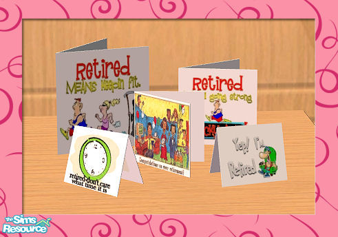 Time for your Sims to start enjoying the fruits of their labour, the good life! No more 9-5. Spend some time with the grandchildren, or let them take their spouses out for a quiet lunch downtown. Let your Sims relax into the final phase of their lives with these cards on view.