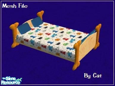 A new fancy bed for your pet complete with 4 pillows and a dogbone headboard and footboard. This is the main mesh file needed for all recolors to work in your game.