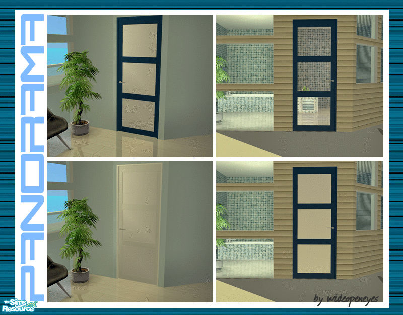 These doors were made to match my Panorama windows. This is a recolor for the Single Door that will give you a blue frame and solid white panels which will give you 3 new looks.