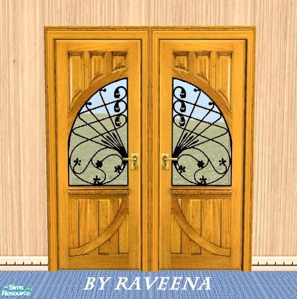 Part of the 'Designer Door Series 5' set. You need BitzyBus's mesh file for this object to work in the game. Download it below. There's also a diagonal mesh listed under Recommended items if you want your door on a diagonal wall.