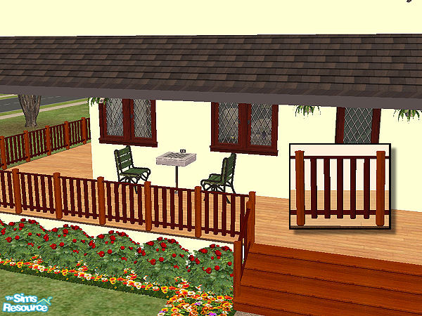 Country fence with posts in walnut and railing in dark wood. Any expansion pack required to work.