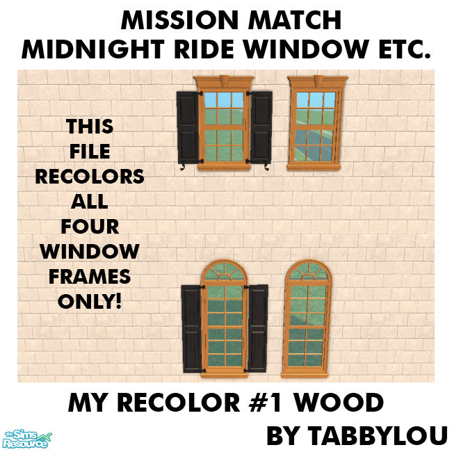 My Recolor #1 Wood Recolor of the FRAMES ONLY for the Midnight Ride Window, Lafenetre Shuttered Window, Lafenetre Window Full-Length & the Lafenetre Stately Full-Length Shuttered Windows. Enjoy! *Shutter recolors are in the Lafenetre Shuttered Window recolors set coming tomorrow.*