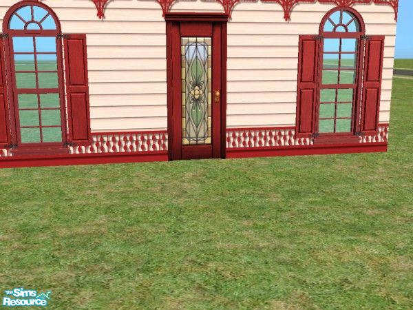 Mostly recolors to match the Maxis shuttered windows and my Victorian siding. Some original stained glass windows in the doors. TSRAA.