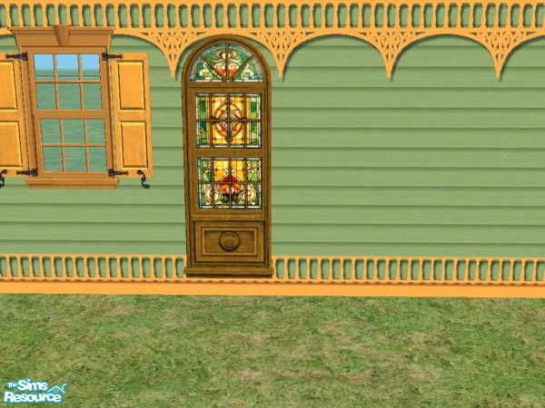Mostly recolors to match the Maxis shuttered windows and my Victorian siding. Some original stained glass windows in the doors. TSRAA.