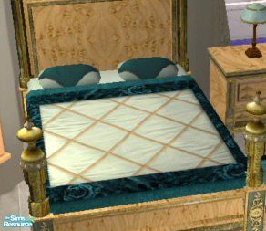 Recolour of VitaSims Bellissimo bedroom using shades of aqua velvet and silk.