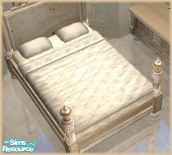 A recolour of Vitasims Bellissimo bedroom in shades of ivory and pearl. Burled ash, cream and ivory silk and silver-gilt accents for an elegant room. Walls and floors by Komosims.