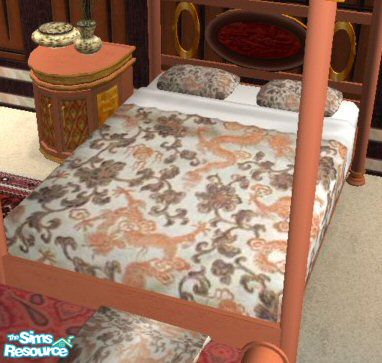 Another recolour of Cashcraft's Asian inspired bedroom, this time using vermilion tones, with an emphasis on chinese lacquer and gilded wood.