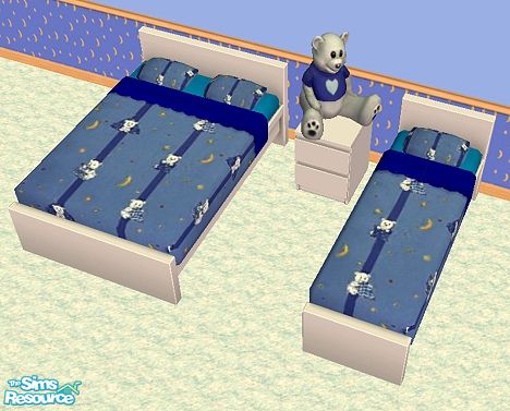 A cute blue bedding with white teddy pattern. Soft dreams for your little boys and girls.