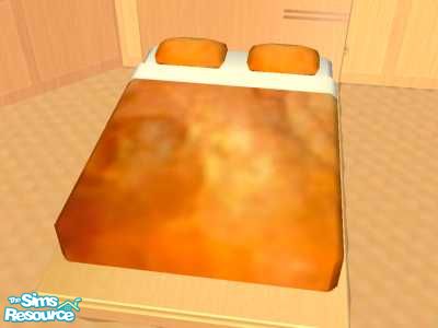 Double bed frame from the \"On Fire\" Bedroom Set. Looks very similar to the original from the Glamour Life stuff pack, but the darker wood band has been lightened up to better match the set.