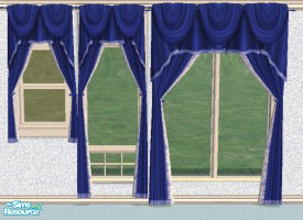 This is one from a set of re-colours of the \'Tie-Back Curtains\' from the Base Game, offering nine different shades of blue with contrasting trims (also available in other colours), they re-colour all three types of curtain as shown. Enjoy!