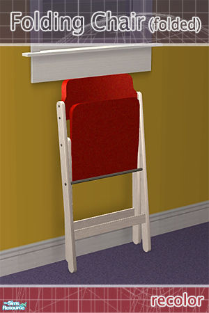 A folded study chair for your teen Sims. (for decorative only) Wood frame and plastic seat can be arranged with at least one recolor installed.