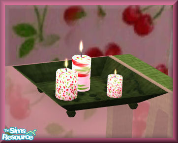 Cherry candles on a plate of green.