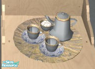 The teaset from 4ESF\'s antique6 bathroom in blue and gold.