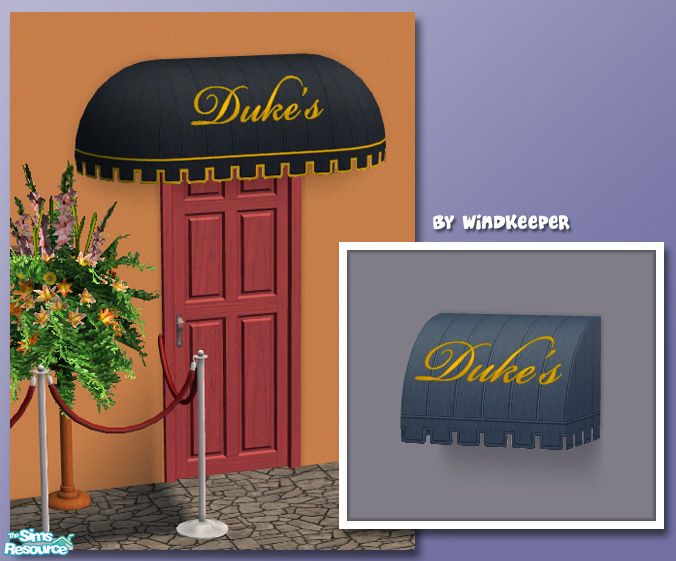 Window Awning with a sign. Linked to Window Awning for fabric colors and to Business Awning 1 for signs.