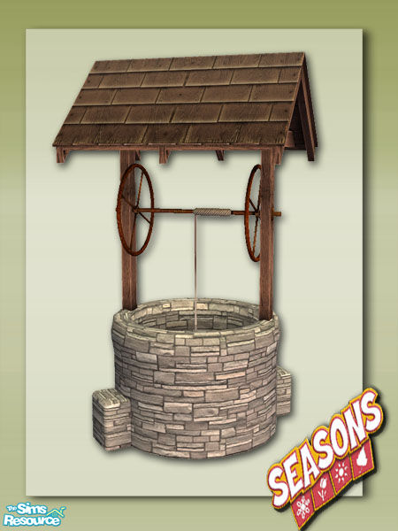 Part of the Seasons Wishing Well Set, now buyable from the catalog in the Decorative Misc Category, pulls all it's textures from the Maxis Original, set also includes several recolours of the Maxis Original.
