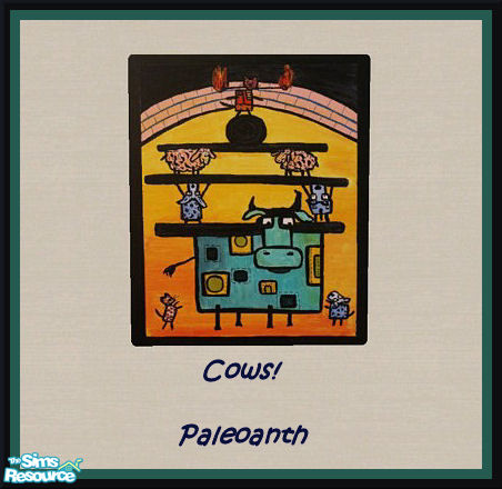 Do you like cows? Do you like cows doing acrobatics? Then this is the painting for you. Folk Art cow recolor of my painting mesh. You must download the mesh to get this to show in your game.