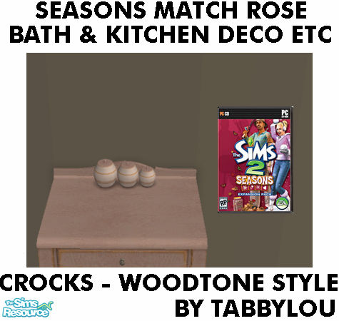Recolor of Earthenware Trio Sculptures in Woodlook - in SM Rose Bath, Kitchen and More items to match the Seasons ingame Country Rose items and my recolors of SM items. Requires Seasons EP. Enjoy!