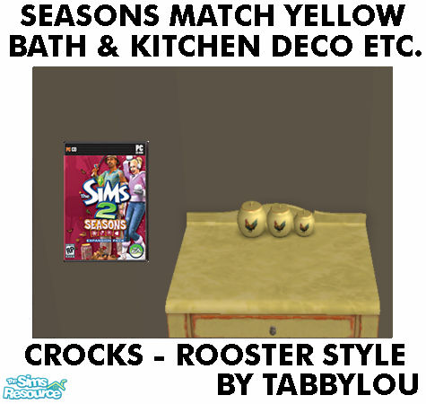 Recolor of Earthenware Trio Sculptures in Rooster Motif - in SM Yellow Bath, Kitchen and More items to match My Seasons Match Country Yellow item sets. Requires Seasons EP. Enjoy!