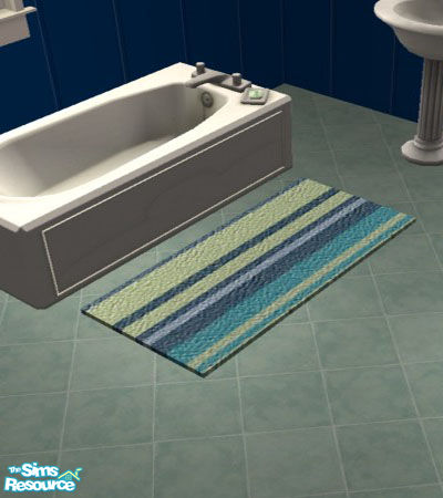 To match my Blue Stripe Bath Accessories. A nice toilet mat and bath rug to keep your Sims feet warm on that cold tile floor. Must have original rug meshes to use in game.