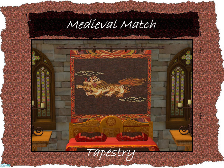 Matches the game medieval objects. Includes Bed Frame with bedskirt that pulls the texture from the bedding so its always a perfect match, Bedspread, Dresser, Tapestry, and Runner Rug (Rug requires Nightlife).