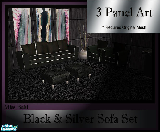Dramatic Living Black & Silver 3 Panel Artwork. This is a mesh Recolour of the 3 panel Art by Nanshi_Nibble. Please download this original mesh for the recolour to work.