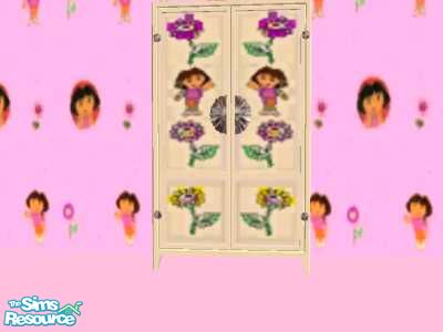 Lovely cream coloured wood with Dora and flower pictures in the panels.It really does look pretty.