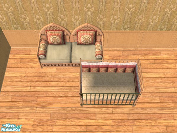 Crib bedding and changing tables with the Maxis Morrocan textures. Also, updated the green Morrocan bedding because my last version was a little too plain for my tastes. :) TSRAA.