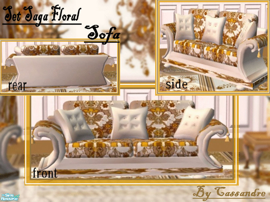 The sofa, like the entire set, is colored in forged gold,deep white,pale parme and yellow.