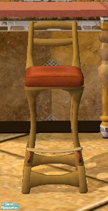 Sims 2 — Old World Barstool (updated) by dancingaphrodite — Light warm wood with vivid deep coral upholstery coordinates