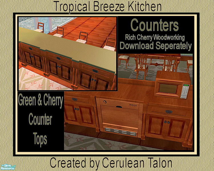 Light tropical breezes make this kitchen a dream come true. Everything for food preparation that will make your Sims' lives as perfect as living on an exotic island.