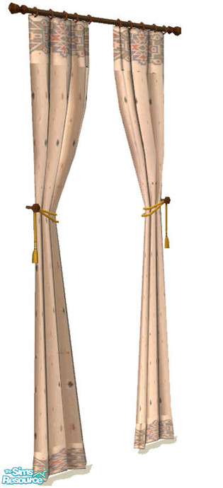 Sims 2 — Sierra Vista Drapes by dancingaphrodite — Neutral beige and slightly patterned drapes trimmed with native