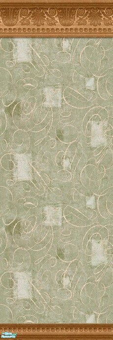 Sims 2 — Nifty 50's Wallpaper by dancingaphrodite — Sage colored paper with flourishes of gold. Medium wood tone, ornate