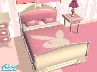 A pink playboy bedding set with a white playboy bunny on the duvet cover and pillow cases, will match the playboy bedroom set.