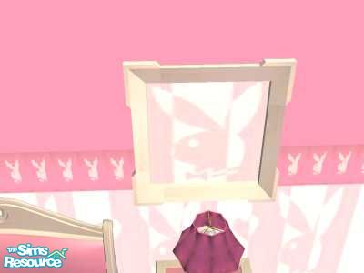 A white framed picture of a striped playboy bunny, matches the pink playboy set.