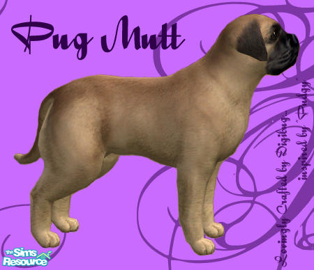 The Pug Mutt is inspired by my childhood friend, "Pudgy". This breed has a slight red shade to its back, a long not-as-squished muzzle, & a tail that isn't as curled as a purebred Pug.