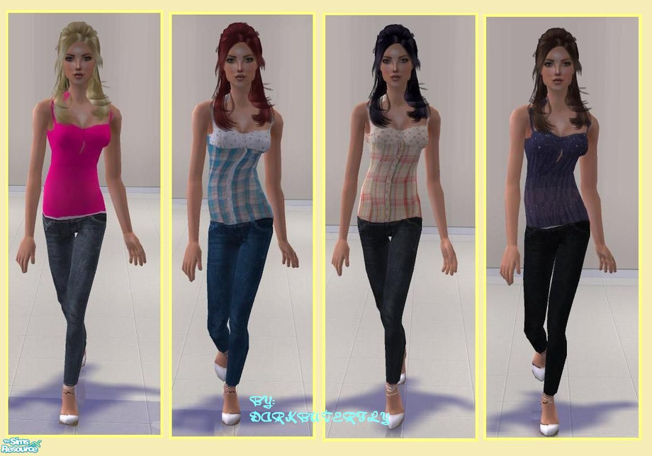 4 casual outfits for your sim ladies! Cute tops and jeans! Dont' forget to get the mesh from Glamorous Lounge. Go to Women->Meshes-> 5th page->1st one from the list! I hope you like them! Enjoy!
