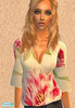 A beautiful kimono style blouse with a rich floral print on vanilla silk. Your Sim will be the envy of her friends in this!
