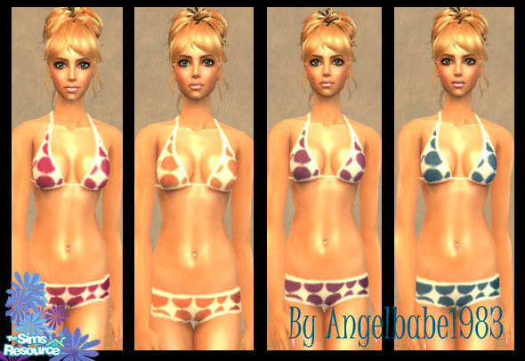 Here is a Bikini Set for your Female Adult Sims. Comes in 4 different colours. Enjoy!