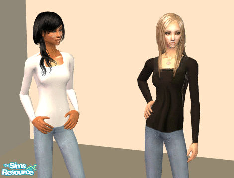 A set of two square necked long sleeve shirts. White and Black. Uses MESH_AF_T_UntuckableTop.rar by HystericalParoxysm at MTS2. Enjoy