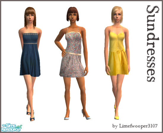 Sims 2 — Sundresses by Limefwooper — A set of 3 colourful dresses that are perfect for relaxing by the pool or taking a