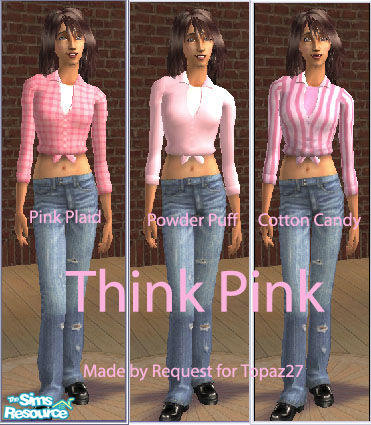 Made by Request for topaz27 a set of three pink tie up tops. In shades of Pink Plaid, Powder Puff, and Cotton Candy.
