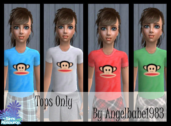 Here is another set for your Female Children. Paul Frank Tees in 4 different colours. Can be mixed and matched with my Skirt Set for Children coming soon. No mesh is needed. Enjoy!