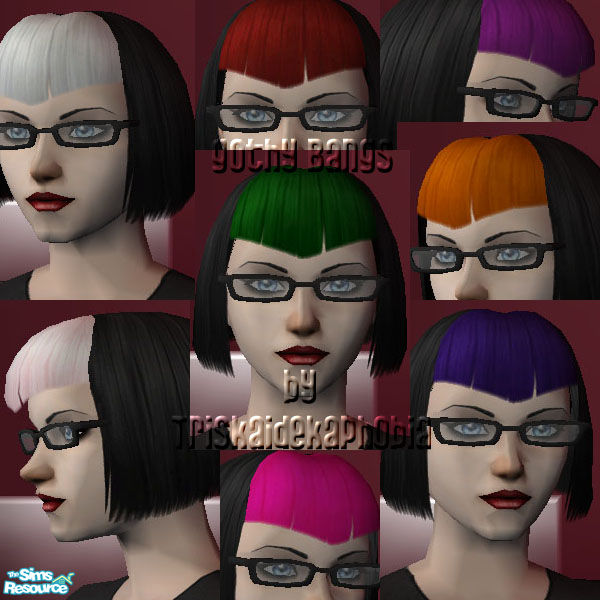 The pointy gothy bangs, all 8 colors... Perfect for those Sims that can't stop changing their hair!