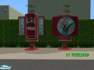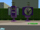 Now all the aliens in the neighborhood don't have to put up with just the plain blue kiosk. They have an assortment of 4 new shades - yellow, green, purple and red...all with their alien skin tone on the back of the kiosk.