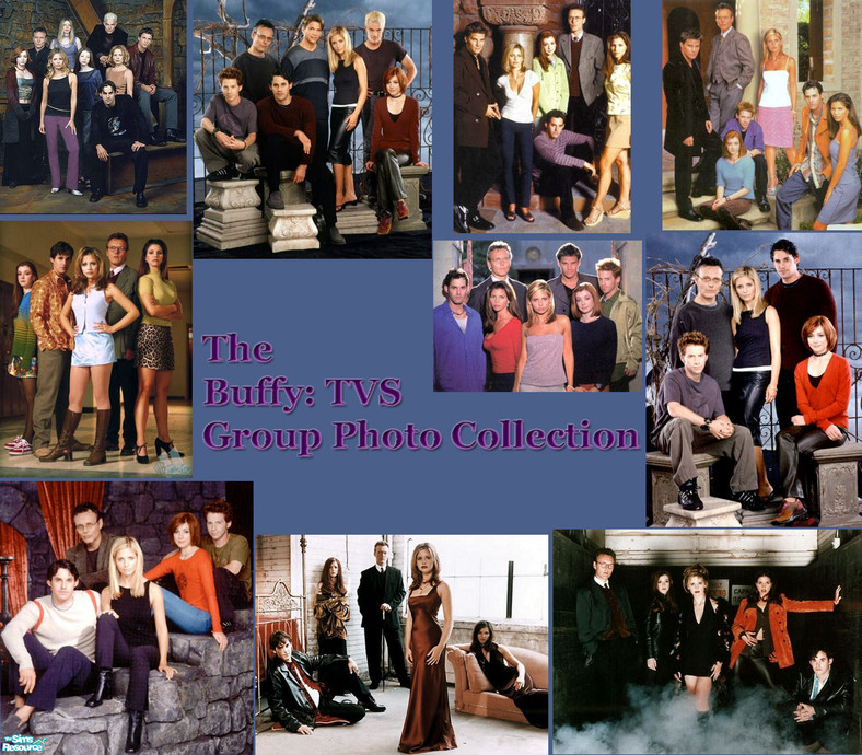 A collection of wall hangings featuring the cast of characters from Buffy: The Vampire Slayer
