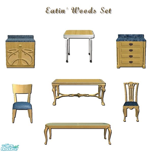 Chairs, Tables, and Counter woods, all set in a lovely pale pine with full grain. You'll enjoy adding these warm touches to your kitchen ... this set is made to go with the Eatin' Setz and Color Simplicity Collection. Brought to you by Drea Penndragon