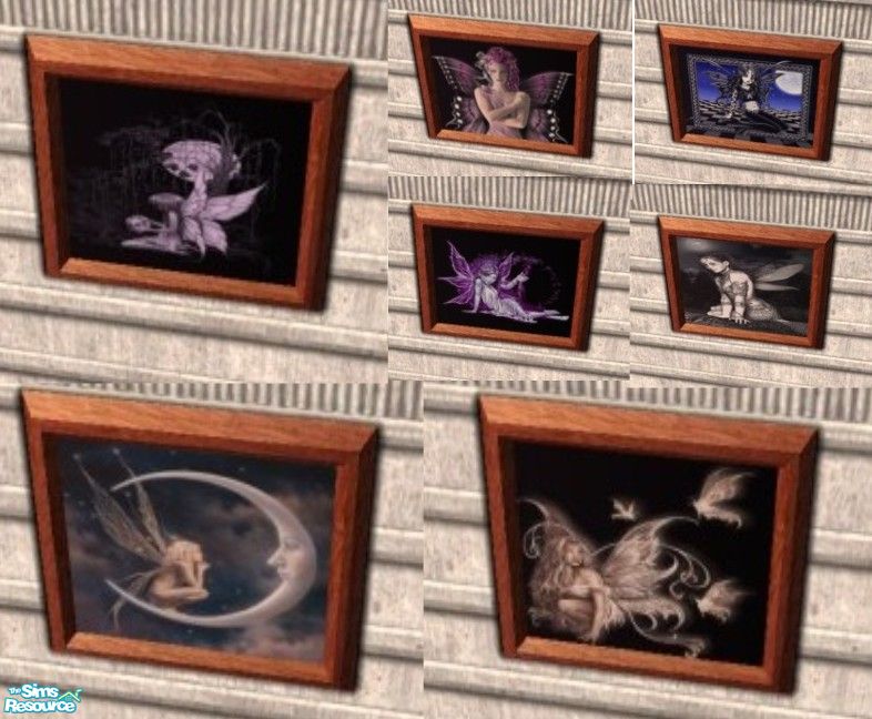 fairies set 2 ~ 7 Fairy themed prints. Found under the fruit bowl painting. 1 tiled. Enviroment 10.