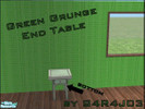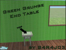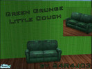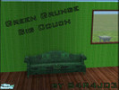 A grungy room set with broken down green couches and a barely standing end table. AKA College furniture! ^-^